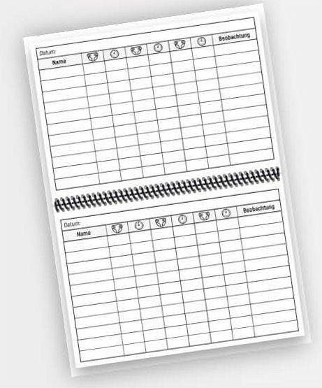 - mit transparenten, abwaschbaren Schutzdeckeln vorne und hinten - praktisches DINA5 Format mit Platz für überr 800 Einträge - praktisches Umblättern durch Spiralbindung - für KiTa, Krippe, Tageseinrichtungen und Familienzentren - viel Platz für Dokumentationen