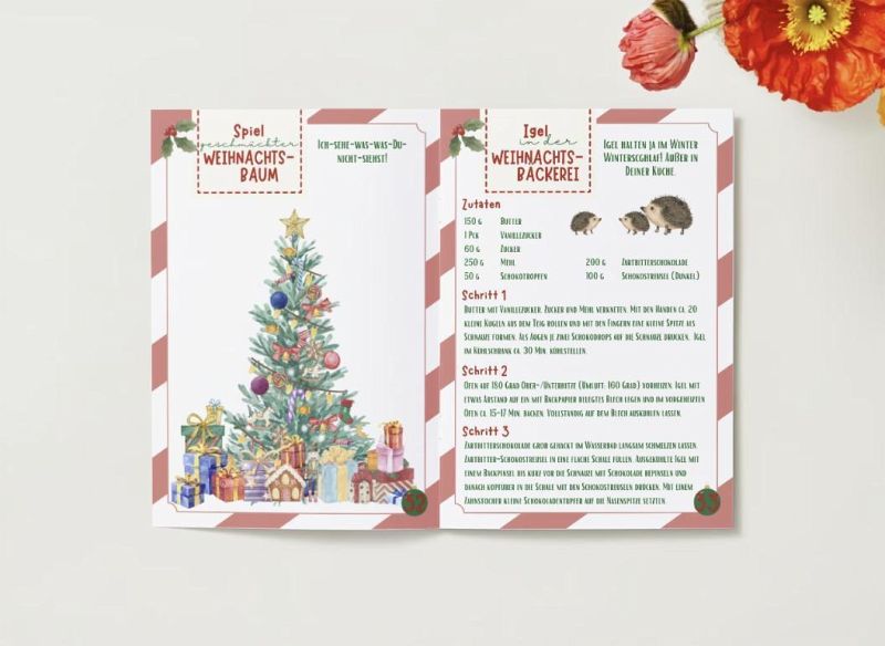 Ein weihnachtliches Abenteuer wartet! Egal, ob Hause oder unterwegs - Du kannst überall in die in die Mitmach-Weihnachtswelt eintauchen! Langeweile im Restaurant? Gehört der Vergangenheit an. Hilf dem Weihnachtsmann seine Geschenke im Wald einzusammeln oder bring Ordnung in das Chaos am Nordpol. Endtdecke, wie aufregend der nächste Waldspaziergang oder Besuch des Weihnachtsmarktes mit Bingo sein kann. Verschönere Dir die Weihnachtszeit mit Rätseln, Basteln, ausmalen und verschiedensten Spielen. Auch ein besonderes Backrezept gehört dazu, um gemeinsam mit deinen Freunden oder deiner Familie Leckereien zu zaubern!