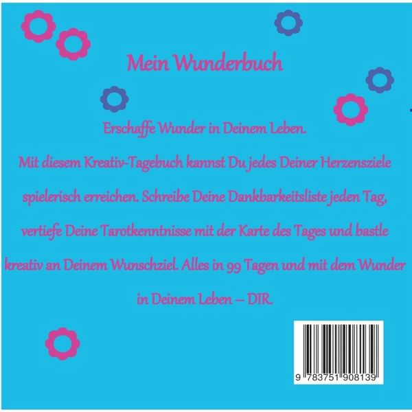 Erschaffe Wunder in Deinem Leben. Mit diesem Kreativ-Tagebuch kannst Du jedes Deiner Herzensziele spielerisch erreichen.Schreibe Deine Dankbarkeitsliste jeden Tag, vertiefe Deine Tarotkenntnisse mit der Karte des Tages und bastle kreativ an Deinem Wunschziel. Alles in 99 Tagen und mit dem Wunder in Deinem Leben - DIR.