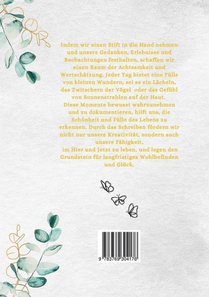 Indem wir einen Stift in die Hand nehmen und unsere Gedanken, Erlebnisse und Beobachtungen festhalten, schaffen wir einen Raum der Achtsamkeit und Wertschätzung. Jeder Tag bietet eine Fülle von kleinen Wundern, sei es ein Lächeln, das Zwitschern der Vögel oder das Gefühl von Sonnenstrahlen auf der Haut. Diese Momente bewusst wahrzunehmen und zu dokumentieren, hilft uns, die Schönheit und Fülle des Lebens zu erkennen. Durch das Schreiben fördern wir nicht nur unsere Kreativität, sondern auch unsere Fähigkeit, im Hier und Jetzt zu leben, und legen den Grundstein für langfristiges Wohlbefinden und Glück.