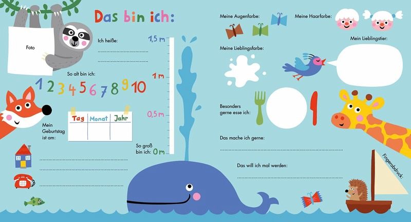 Auf den Doppelseiten dieses bunten Eintragbuchs können sich die ersten Freunde mit selbst gemalten Bildern, Fingerabdrücken und vielem mehr verewigen. Spezielle Erinnerungsseiten bieten außerdem Platz für eigene Bastelarbeiten oder Fotos von Ausflügen oder Feiern.