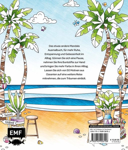 Genau das gelingt Ihnen mit diesem wunderschön illustrierten Ausmalbuch. Die exotischen Motive aus der fernen Inselwelt Ozeaniens sorgen mit ihren liebevollen Details für jede Menge Ausmalfreude und sprühende Fantasie. Also ran an den Stift und rein ins Mandala-Ausmalglück!