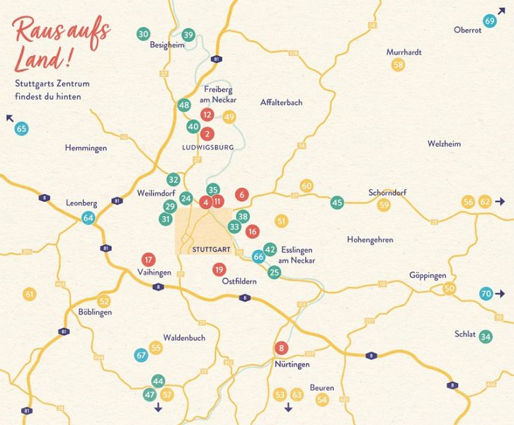 Ob Brotbacken oder Baden, Bogenschießen oder Ballonfahren, Burg oder Baumhaus - in und um die Schwabenmetropole finden sich faszinierend vielfältige Flecken, an denen man kurz durchatmen, ein paar Stunden ausspannen oder auch ein ganzes Wochenende dem Alltag entfliehen kann. Daniela Berg und Mareike Fröhlich präsentieren Orte, die den Körper in Bewegung und den Geist zur Ruhe bringen, die Kreativität kitzeln und Genussmomente schenken. 70 inspirierende Auszeiten für jedes Zeitbudget!