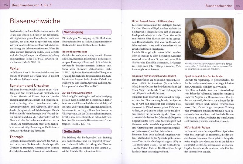 Franziska Rubin, der ein Expertenteam zur Seite stand, geht bei allen Informationen und Tipps sowohl auf die Schul- und Naturmedizin ein. Auch auf Homöopathie, Ayurveda und Physiotherapie wird immer wieder hingewiesen. Die Aufmachung des Ratgebers ist sehr übersichtlich durch farbige Überschriften und separate Informationskästen. Die Schrift ist gut lesbar (etwas größere Zeilenabstände), sodass auch ältere Menschen, an die sich ja das Buch in erster Linie richtet, damit gut zurechtkommen sollten.