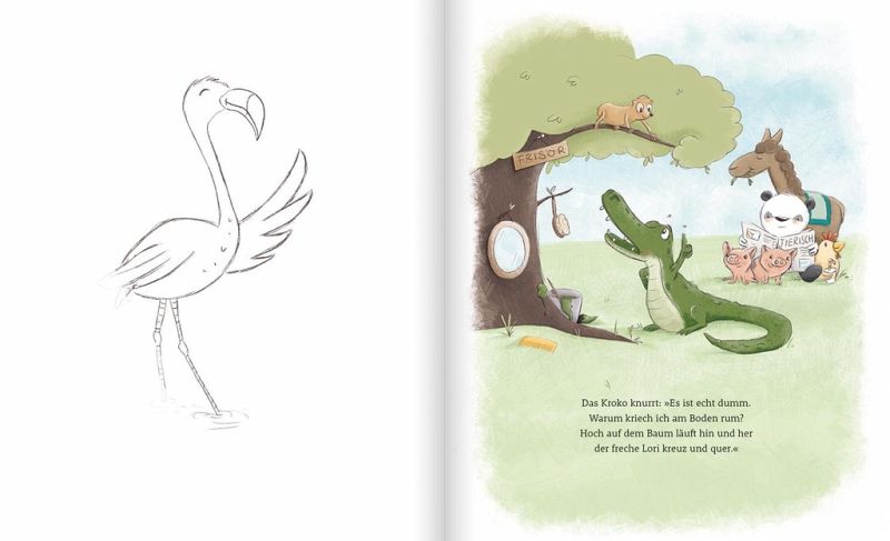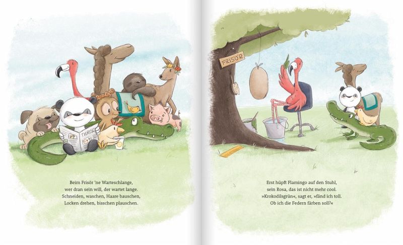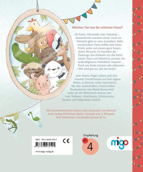 Dieses einzigartige Kinderbuch entführt junge Leser in eine farbenfrohe Welt, in der zehn Tiere den Friseursalon besuchen, um außergewöhnliche und fantasievolle Frisuren zu bekommen. Jedes Tier, vom eitlen Flamingo, der sich ein krokodilgrünes Federkleid wünscht, bis hin zum Löwen, der eine besonders wilde Mähne möchte, kommt mit großen Erwartungen, die humorvoll und lehrreich zugleich sind. Durch den Verlauf der Geschichten, die in Reimen voller Sprachwitz von Ann-Katrin Heger erzählt werden, lernen die Tiere und die jungen Leser, dass wahre Schönheit in der Einzigartigkeit jedes Einzelnen liegt. Marlit Kraus' charmante Illustrationen ergänzen die Texte perfekt und machen das Buch zu einem visuellen Vergnügen. Zusätzlich bietet das Buch kreative Bastelmöglichkeiten mit heraustrennbaren Seiten zum Ausmalen und Basteln einer Girlande, die das Kinderzimmer verschönern kann.