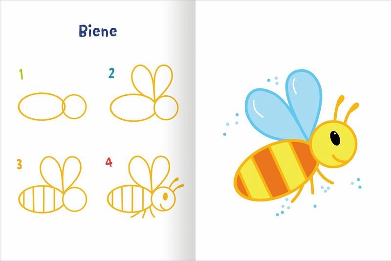 Diese wunderbare Malschule zeigt Schritt für Schritt in kurzen Anleitungen, wie aus einfachen Grundformen tolle Bilder entstehen können. Die Motive werden in 4 Schritten klar erklärt. Ob Auto, Vogel oder Blume, die Bilder sind kinderleicht nachzuzeichnen.