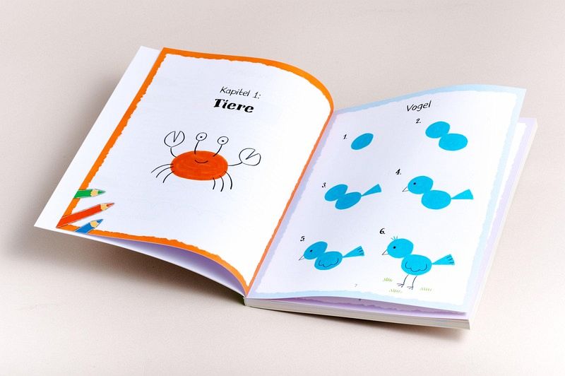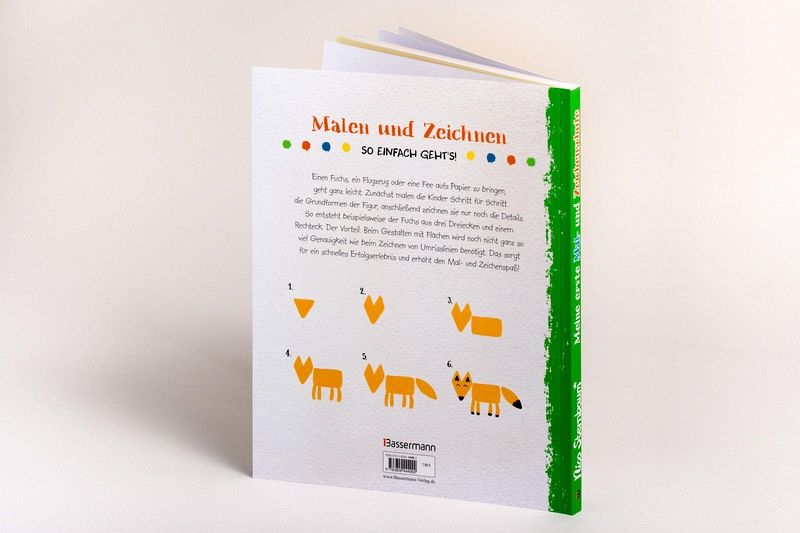 Elefant, Blume, Rakete, Schloss oder Einhorn - diese Zeichenschule für Kinder ab 4 Jahren bietet über 100 Motive zum Nachzeichnen. Das geht ganz leicht: Zunächst werden Schritt für Schritt die Grundformen der Figur gemalt, anschließend folgen die Details. So entsteht z.B. aus drei Dreiecken und einem Quadrat ein Fuchs. Der Vorteil: Beim Gestalten mit Flächen wird noch nicht ganz so viel Planung und Genauigkeit wie beim Zeichnen von Umrisslinien benötigt. Das erhöht das Erfolgserlebnis der kleinen Zeichenkünstler und den Spaß.