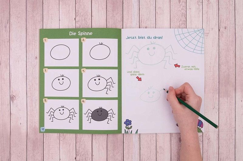 Ob einen niedlichen Hund, einen lustigen Affen oder einen wilden Löwen - hier lernen schon die Kleinsten, ihre Lieblingstiere zu malen. Kindgerechte Schritt-für-Schritt-Anleitungen zeigen, wie aus einfachen Formen ganz leicht kreative Bilder entstehen. Und wenn diese dann auch noch bunt ausgemalt oder miteinander kombiniert werden, ist das Kunstwerk perfekt! 44 einfache Schritt-für-Schritt-Anleitungen Viel Platz für eigene Bilder Fördert Kreativität und Motorik bei Kindern ab 3 JahrenZum Malen und Zeichnen lernenFür Mädchen und Jungen ab 3 JahrenAls Geschenk geeignetFördert die Auge-Hand-KoordinationMal- und ZeichenschuleBeliebtes Thema: Tiere
