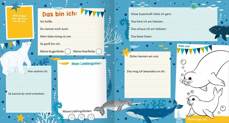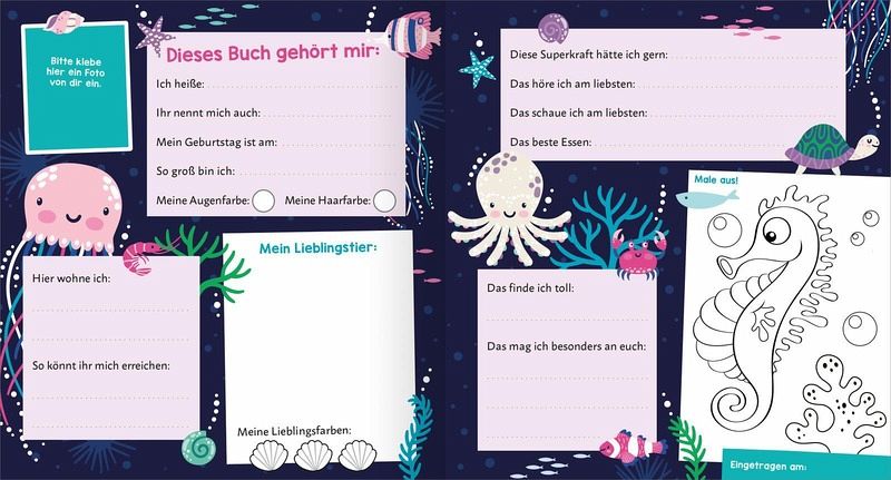 Einzigartiges Design: Die lustigen Wackelaugen auf dem Cover sorgen für ExtrafreudeFür Meerfans: Bunt gestaltete Seiten mit vielen coolen WassertierenViel Platz: Damit alle deine Freundinnen und Freunde sich eintragen könnenAb 3 Jahren: Mit kindgerechten Fragen und vielen Möglichkeiten zum Ausmalen und Selbst-aktiv-WerdenIdeale Geschenkidee: Zum Geburtstag, für den Kindergartenstart oder einfach zwischendurch