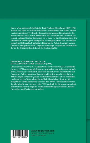 During the 1930s the Vienna-born writer Emil Alphons Rheinhardt (1889â??1945) lived in the town of Le Lavandou in the South France, where he made his house a hospitable meeting place for German-speaking literary exiles. In 1943, during the German occupation of France, Rheinhardt was arrested and then in 1944 deported to Dachau concentration camp, where he died shortly before the liberation. A few years ago the historian Dominique Lassaigne discovered his prison diary, which had been believed lost. Rheinhardtâ??s notes from the Gestapo prisons bear witness to a long-forgotten humanist who believed in the peacemaking power of culture.