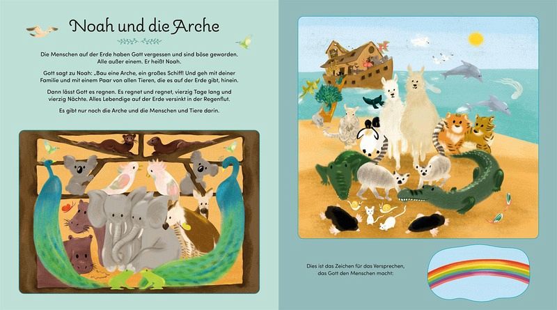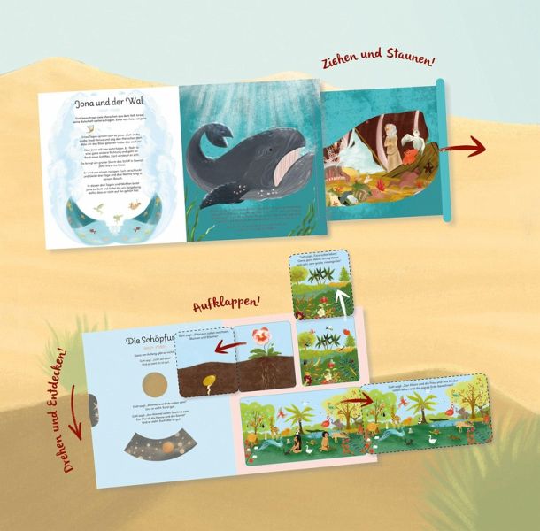 Die Dreh-, Klapp, Popup- und Ziehelemente sind der ganz besondere Clou dieser liebevoll nacherzählten und farbenfroh illustrierten Kinderbibel.