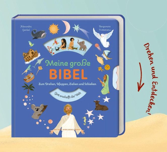 Kinderhände dürfen mitmachen bei dieser Kinderbibel. Was verbirgt sich hinter der nächsten Klappe? Was erscheint im Fenster, wenn ich das Rad weiterdrehe? Ein Bibelbuch voller Überraschungen!