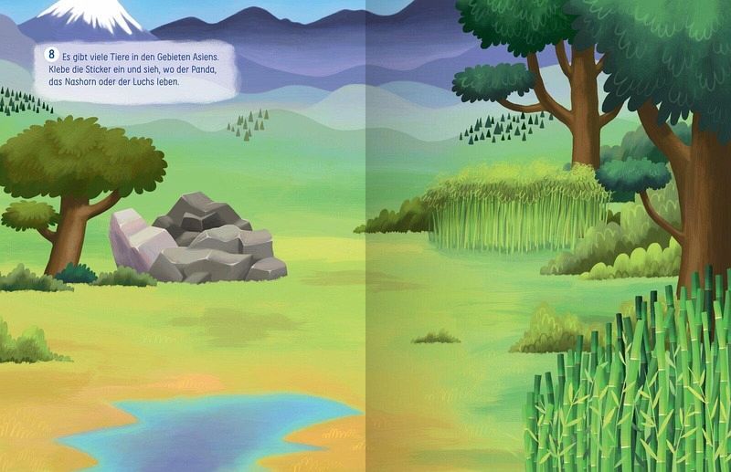 Kinder können die Tiere zu Hause, auf dem Bauernhof, im Wald, unter Wasser, in Afrika, in der Arktis, im Regenwald und in denGebieten Asiens erkunden.Mit über 150 Metallicstickern können Kinder ab 4 Jahren die buntgemischten Szenen bekleben. Kurze Texte und Ausmalseiten bieten eine weitere entspannte Beschäftigung.