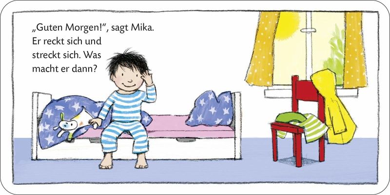 Sechs kleine Bücher für Kinder ab 18 Monaten mit allen wichtigen Themen, die für Eltern und Kind wichtig sind oder wichtig werden: Anziehen, Essen, aufs Töpfchen gehen, Dreiradfahren, Baden, Einschlafen. Niedliche, aus dem Leben gegriffene Szenen schaffen einen hohen Identifiktionswert und bieten allererste kleine Geschichten zum ersten Vorlesen. Auf der jeweils letzten Doppelseite sind die Schlüsselwörter der Geschichte nochmal als Vignetten abgebildet. So passiert die Erweiterung des Wortschatzes ganz nebenbei beim Vorlesen, Zuhören und Schauen.