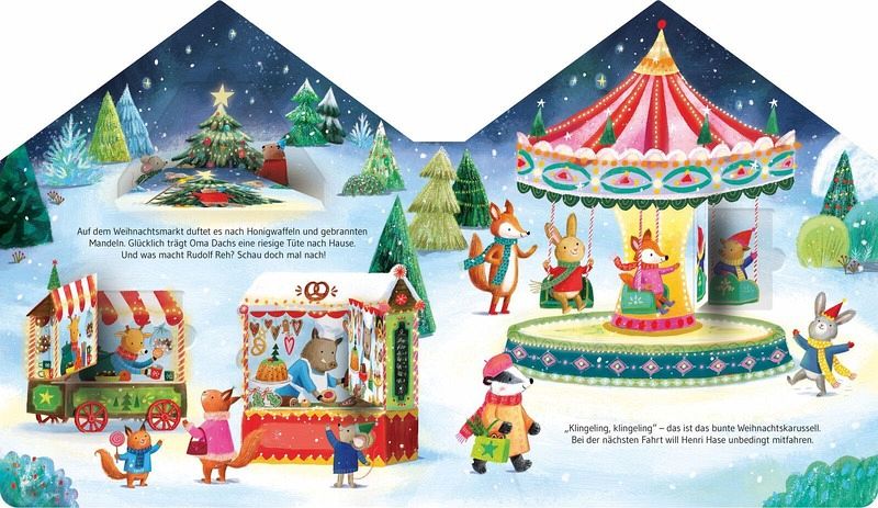 Weihnachtsstimmung pur Für eine gemütliche Vorlese-Kuschelzeit im Advent Mit 24 stabilen Klapp-Türchen zum Öffnen zauberhaft illustriert Hier darf man, was ansonsten vor Weihnachten streng verboten ist: hinter alle Türen und Fenster schauen! Denn 24 zauberhafte Überraschungen verkürzen für Kinder ab 18 Monaten die Wartezeit bis zum schönsten Fest des Jahres. Was gibt es bei Familie Fuchs zum Frühstück? Wovon träumt Oma Dachs? Was hängen die Hasenkinder an ihren Weihnachtsbaum? Und was mag Schönes in den bunten Päckchen stecken? In der kleinen Weihnachtsstadt lassen sich unzählige niedliche…mehr