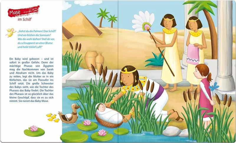 Einfache Texte und farbenfrohe Illustrationen machen die ausgewählten Bibelstellen für Kinder verständlich. Die enthaltenen Fragen ermutigen sie dazu, Vergleiche zu ihrem eigenen Alltag anzustellen und so die Erzählungen in ihrer Erfahrungswelt zu verankern.