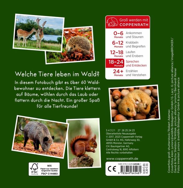 In diesem Fotobuch gibt es über 60 Waldbewohner zu entdecken. Die Tiere klettern auf Bäume, wühlen durch das Laub oder flattern durch die Nacht. Ein großer Spaß für alle Tierfreunde!