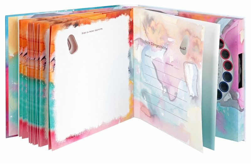 "Meine Milchzahngeschichten" ist ein Album zum Sammeln von Milchzähnen und ihren Geschichten. Im Buch ist eine Drehscheibe integriert, durch die sich jeder Zahn zur passenden Geschichte drehen lässt. Die Drehscheibe enthält 20 einzelne gepolsterte Fächer für die Milchzähne. Das Buch ist liebevoll und altersübergreifend mit Aquarellen gestaltet. Im Albumteil besteht die Möglichkeit, Fotos einzukleben und die Geschichten durch eigene Zeichnungen zu ergänzen. Die Zähne können nach dem medizinischen Zahnschema eingeordnet werden, zusammenfassende Erklärungen dazu und zum Zahnwechsel befinden sich im hinteren Teil des Buches.…mehr