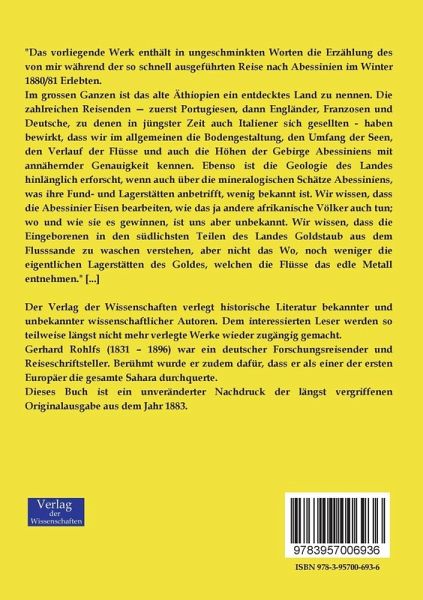 "Das vorliegende Werk enthält in ungeschminkten Worten die Erzählung des von mir während der so schnell ausgeführten Reise nach Abessinien im Winter 1880/81 Erlebten.