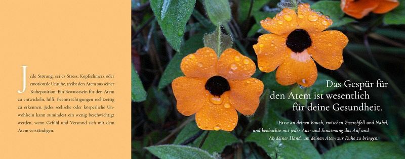 Achtsames Atmen ist das Fundament des Yoga. Statt "atemlos durch die Nacht" lieber atemvoll durch den Tag - aber Luft holen will gelernt sein! Richtiges Aus- und Einatmen hilft maßgeblich dabei, gesund zu bleiben oder zu werden. Doch nicht nur auf die richtige Technik kommt es dabei an, sondern vor allem auch darauf, ein Gefühl zu entwickeln für den eigenen Atemfluss. Meditative Sätze und praktische Anleitungen führen den Leser zu einer ganzheitlichen Entspannung.