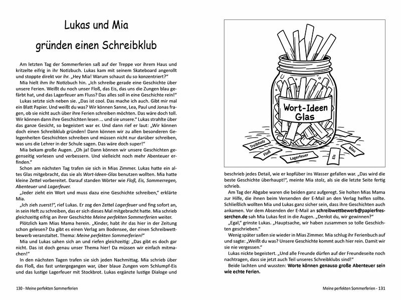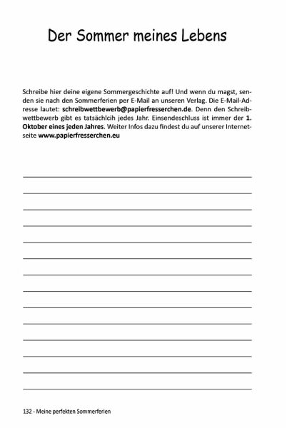 Ferienzeit ist Abenteuerzeit: Dieses coole Ferienbuch steckt voller Ideen und kurzen Geschichten für alle, die ihre Ferien zum besten Abenteuer aller Zeiten machen wollen! Hier findest du spannende Geschichten zum Lesen und jede Menge Platz, um deine eigenen Erlebnisse, Gedanken oder Geschichten festzuhalten - egal, ob du unterwegs bist, mit Freundinnen oder Freunden Spaß hast oder einfach mal einen entspannten Tag zu Hause genießt.Damit dir garantiert nicht langweilig wird, wartet eine tolle Bucket-List auf dich. Darauf kannst du all die Dinge sammeln, die du in den Ferien unbedingt erleben möchtest - und natürlich abhaken, was du schon geschafft hast. Außerdem findest du viele kreative Freizeittipps und Ideen, die deine Ferien noch spannender machen.Und das ist noch längst nicht alles: Freu dich auf Malvorlagen zum Ausmalen, ein Ferien-Freundebuch, in das sich deine Freunde eintragen können, und Seiten für Fotos, Zeichnungen oder deine schönsten Erinnerungen. Und wenn du magst,kannst du dich auch an einem ganz realen Schreibwettbewerb zum Thema "Meine perfekten Sommerferien" beteiligen. Außerdem findest du im Buchs spezielle Tagebuchseiten, auf denen du Tag für Tag notieren kannst, was du erlebt hast - mit Platz für Datum und Wochentag, damit du später noch genau weißt, wann dein coolstes Abenteuer stattfand.Ferienzeit ist Abenteuerzeit - schnapp dir dein Ferienbuch und starte durch in deine perfekten Sommerferien!