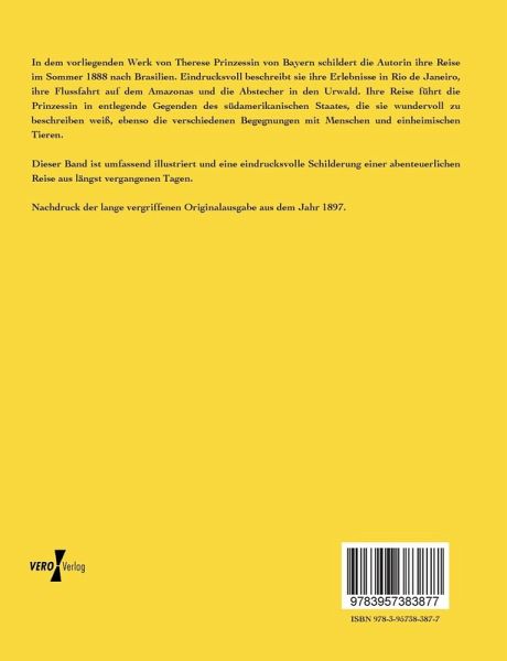 In dem vorliegenden Werk von Therese Prinzessin von Bayern schildert die Autorin ihre Reise im Sommer 1888 nach Brasilien. Eindrucksvoll beschreibt sie ihre Erlebnisse in Rio de Janeiro, ihre Flussfahrt auf dem Amazonas und die Abstecher in den Urwald. Ihre Reise führt die Prinzessin in entlegende Gegenden des südamerikanischen Staates, die sie wundervoll zu beschreiben weiß, ebenso die verschiedenen Begegnungen mit Menschen und einheimischen Tieren.