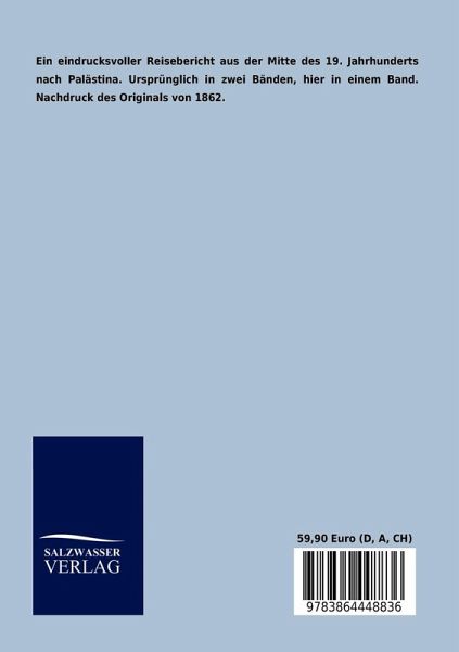 Ein eindrucksvoller Reisebericht aus der Mitte des 19. Jahrhunderts nach Palästina. Ursprünglich in zwei Bänden, hier in einem Band. Nachdruck des Originals von 1862.