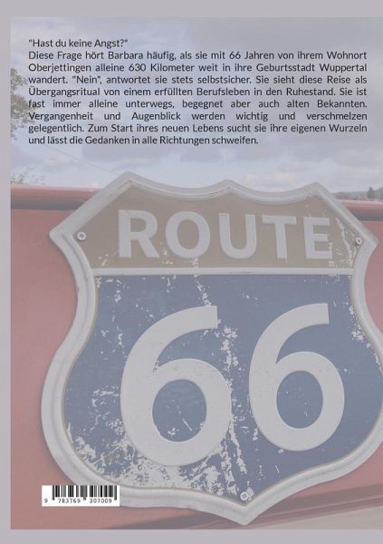 "Hast du keine Angst?" Diese Frage hört Barbara häufig, als sie mit 66 Jahren von ihrem Wohnort Oberjettingen alleine 630 Kilometer weit in ihre Geburtsstadt Wuppertal wandert. "Nein", antwortet sie stets selbstsicher. Sie sieht diese Reise als Übergangsritual von einem erfüllten Berufsleben in den Ruhestand. Sie ist fast immer alleine unterwegs, begegnet aber auch alten Bekannten. Vergangenheit und Augenblick werden wichtig und verschmelzen gelegentlich. Zum Start ihres neuen Lebens sucht sie ihre eigenen Wurzeln und lässt die Gedanken in alle Richtungen schweifen.