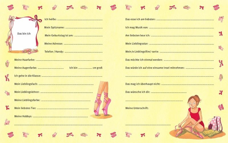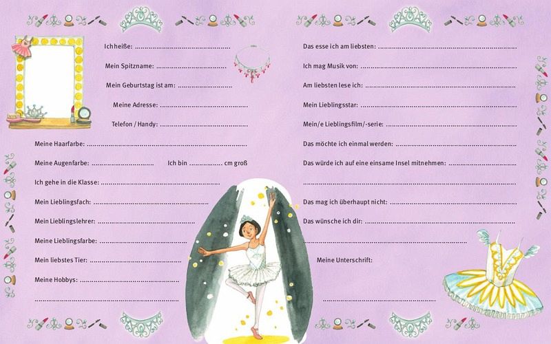 - Es können auf jeder Doppelseite Infos wie Name, Spitzname, Alter und Vorlieben eingetragen werden.