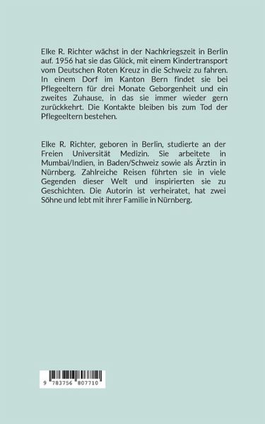 Elke R. Richter wächst in der Nachkriegszeit in Berlin auf. 1956 hat sie das Glück, mit einem Kindertransport vom DRK in die Schweiz zu fahren. In einem Dorf im Kanton Bern findet sie bei Pflegeeltern für drei Monate Geborgenheit und ein zweites Zuhause, in das sie immer wieder gern zurückkehrt. Die Kontakte bleiben bis zum Tod der Pflegeeltern bestehen.