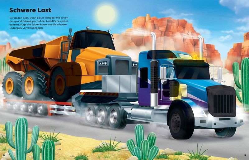 Mega-Trucks im EinsatzVom kleinen Gabelstapler über hochmoderne Fahrzeuge bis hin zum superschnellen Jet-Truck - mit den über 110 Stickern, davon viele mit Metallic-Effekt, kannst du die spannenden Szenen gestalten. Dieses Buch ist vollgepackt mit außergewöhnlichen Trucks in ihren verschiedenen Einsatzgebieten.- Von hochmodernen Feuerwehrautos und schweren Schneepflügen bis hin zu gigantischen Lastzügen und Trucks mit Teleskopkränen - Vollgepackt mit Zusatzinfos zu außergewöhnlichen Einsatzgebieten sowie Steckbriefen- Mit über 110 Stickern, davon viele in Metallic, wird ganz nebenbei die Feinmotorik und die Auge-Hand-Koordination trainiert