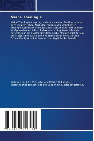 Meine Theologie entspringt nicht nur meinem Studium, sondern auch meinem Leben. Nach dem Studium der katholischen Theolgie, Geschichte und Literaturwissenschaft für das Lehramt an Gymnasien war ich als Referendarin tätig, bevor ich mich entschloss, in ein Kloster einzutreten. Ich entschied mich für ein die Trappistinnen, also einen kontemplativen monastischen Orden. Die Spiritualität fusst auf der Regel des hl. Benedikt.