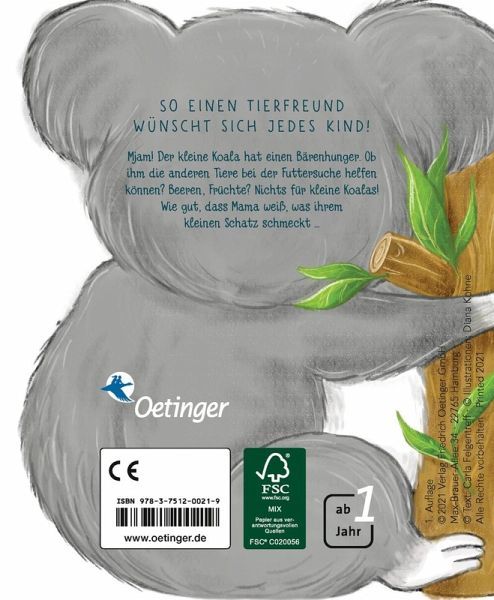 So einen Tierfreund wünscht sich jedes Kind! Mjam! Der kleine Koala hat einen Bärenhunger. Ob ihm die anderen Tiere bei der Futtersuche helfen können? Beeren, Früchte? Nichts für kleine Koalas! Wie gut, dass Mama weiß, was ihrem kleinen Schatz schmeckt.