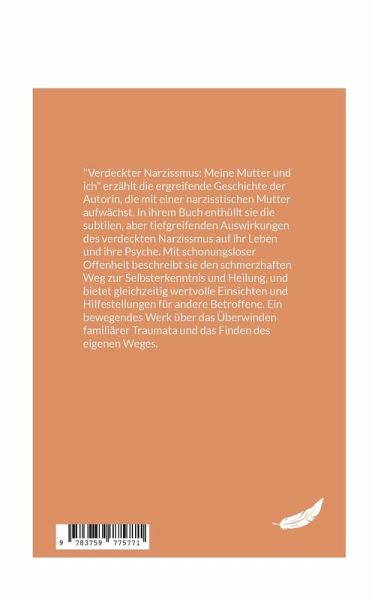 "Verdeckter Narzissmus: Meine Mutter und ich" erzählt die ergreifende Geschichte der Autorin, die mit einer narzisstischen Mutter aufwächst. In ihrem Buch enthüllt sie die subtilen, aber tiefgreifenden Auswirkungen des verdeckten Narzissmus auf ihr Leben und ihre Psyche. Mit schonungsloser Offenheit beschreibt sie den schmerzhaften Weg zur Selbsterkenntnis und Heilung, und bietet gleichzeitig wertvolle Einsichten und Hilfestellungen für andere Betroffene. Ein bewegendes Werk über das Überwinden familiärer Traumata und das Finden des eigenen Weges.