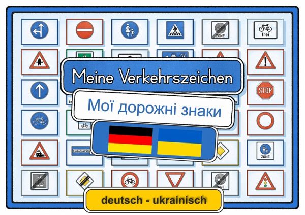 Meine Verkehrszeichen in deutsch - ukrainisch - 37 Lernkarten DINA 4Die Lernkarten der Verkehrszeichen umfassen auch die in der StVO-Novelle 2020 hinzugefügten für Fahrradfahrer wichtigen neuen Schilder.Sie beinhalten alle wichtigen Verkehrszeichen (Stand 28.04.2020) und Regeln, besonders für die Fahrradprüfung. - Ideal für jedes Kinderzimmer, den Kindergarten oder das Klassenzimmer.- Ideal auch für Fahrschulen- Die Karten sind in 26 Sprachen erhältlich!