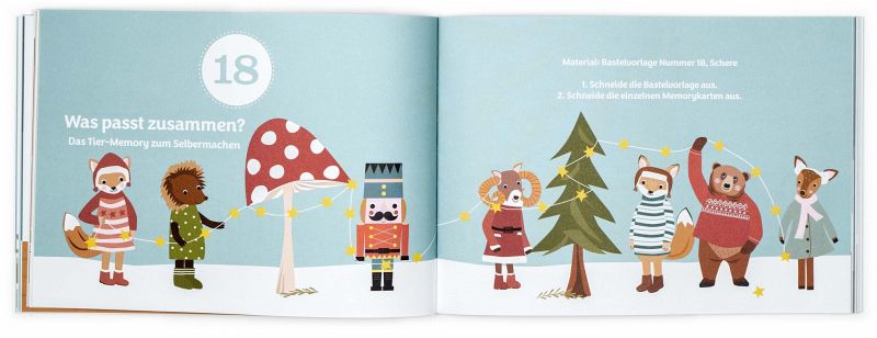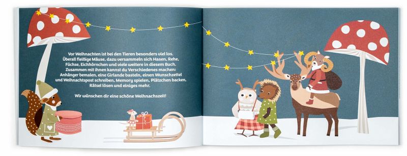 In diesem Buch findest du 24 kreative Ideen und Bastelvorlagen für eine wundervolle Weihnachtszeit. Viele kleine Überraschungen warten auf dich: Fleißige Mäuse, hilfsbereite Hasen und zahlreiche andere Tiere begleiten dich beim Basteln, Malen, Schreiben, Backen, Spielen, Rätseln und Entdecken.