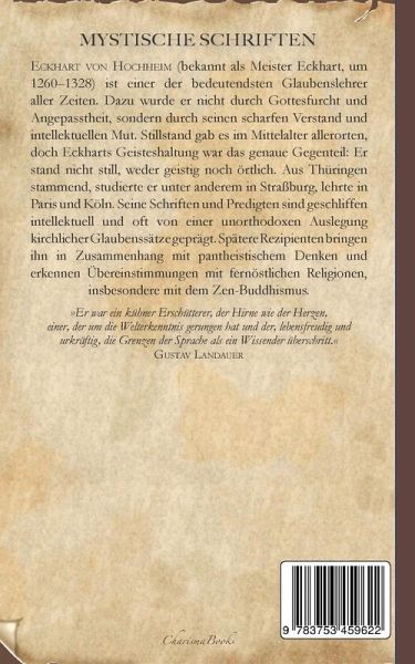 Meister Eckhart: Mystische Schriften Neu editierte Ausgabe, mit aktuellem Vorwort Eckhart von Hochheim (bekannt als Meister Eckhart, um 1260-1328) ist einer der bedeutendsten Glaubenslehrer aller Zeiten. Und dazu wurde er nicht durch Gottesfurcht und Angepasstheit, sondern durch seinen scharfen Verstand und intellektuellen Mut. Stillstand gab es im Mittelalter allerorten, doch Eckharts Geisteshaltung war das genaue Gegenteil: Er stand nicht still, weder geistig noch örtlich. Aus Thüringen stammend, studierte er unter anderem in Straßburg, lehrte in Paris und Köln. Seine Schriften und Predigten sind geschliffen intellektuell und oft von einer unorthodoxen Auslegung kirchlicher Glaubenssätze geprägt. Spätere Rezipienten bringen ihn in Zusammenhang mit pantheistischem Denken und erkennen Übereinstimmungen mit fernöstlichen Religionen, insbesondere mit dem Zen-Buddhismus.