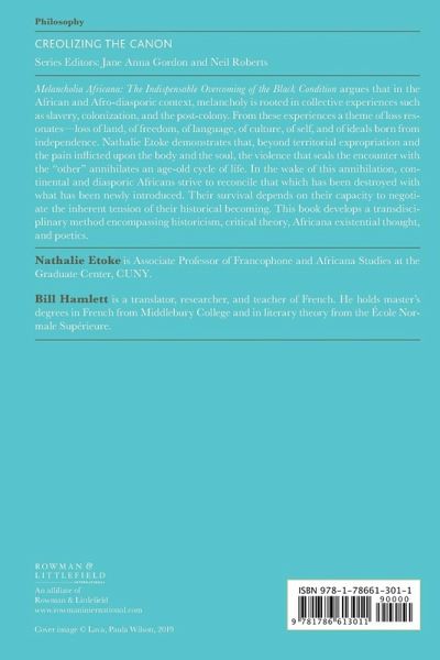 Series Editors' Note Foreword by Lewis R. Gordon Translator's Note Author's Introduction Part I: Melancholia Africana: Scattered Fragments of Africa 1. Loss, Mourning, and Survival in Africa and the Diaspora 2. For a Diasporic Consciousness 3. At the end of daybreak. the strength to see tomorrow 4. Pain that Sings the Happiness to Come Part II: How Does One Make Sense of Postcolonial Nonsense? 1. Scarlet Dawns of a Memory of Forgetting 2. From Death to Life in the Country of a Thousand Hills 3. From the Gaze of the Other to Self-Reflection 4. "On va faire comment ?": Fact of Language, Civic Renunciation, or Theodicy of the Everyday in the Postcolony 5. Coda Epilogue: An Interview with Nathalie Etoke conducted by LaRose T. Parris (2019)
