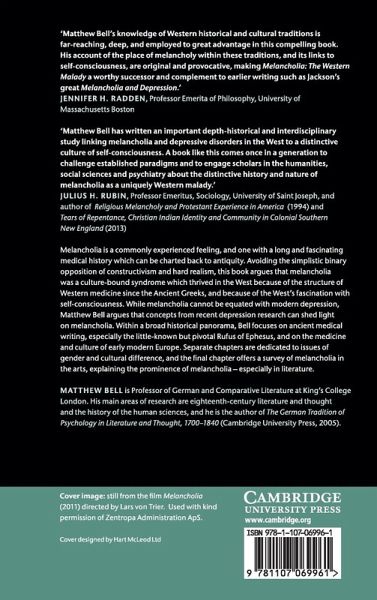 A unique explanation of melancholia, charting its fascinating history and demonstrating how it flourished because of the West's peculiar fascination with self-consciousness. This book will appeal to readers interested in the cultural history of the West, as well as those with an interest in mental illness.