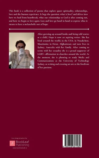 This book is a collection of poems that explore queer spirituality, relationships, love and the human experience. It begs the question: what is love? and delves into how we heal from heartbreak, what our relationship to God is after coming out, and how we begin to love again. Loss and love go hand in hand to express what it means to have a melancholic sort of hope.