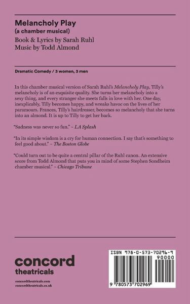 In this chamber musical version of Sarah Ruhl's Melancholy Play, Tilly's melancholy is of an exquisite quality. She turns her melancholy into a sexy thing, and every stranger she meets falls in love with her. One day, inexplicably, Tilly becomes happy, and wreaks havoc on the lives of her paramours. Frances, Tilly's hairdresser, becomes so melancholy that she turns into an almond. It is up to Tilly to get her back.
