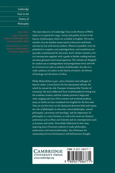 This volume, first published in 1999, presents a large selection of Melanchthon's orations and textbook prefaces translated into English. They address subjects as diverse as moral philosophy, astronomy and mathematics, and illuminate the relationship between Renaissance and Reformation thought.