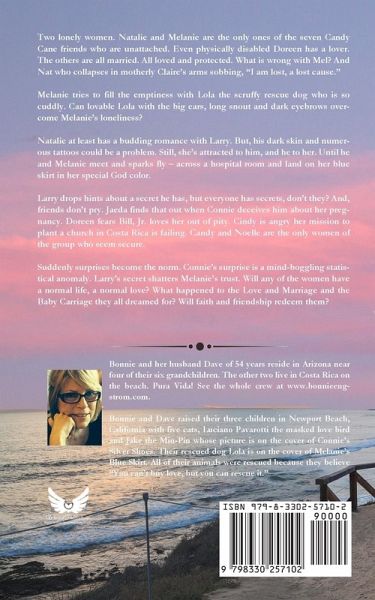 Two lonely women. Natalie and Melanie are the only ones of the seven Candy Cane friends who are unattached. Even physically disabled Doreen has a lover. The others are all married. All loved and protected. What is wrong with Mel? And Nat who collapses in motherly Claire's arms sobbing, "I am lost, a lost cause." Melanie tries to fill the emptiness with Lola the scruffy rescue dog who is so cuddly. Can lovable Lola with the big ears, long snout and dark eyebrows overcome Melanie's loneliness? Natalie at least has a budding romance with Larry. But, his dark skin and numerous tattoos could be a problem. Still, she's attracted to him, and he to her. Until he and Melanie meet and sparks fly - across a hospital room and land on her blue skirt in her special God color. Larry drops hints about a secret he has, but everyone has secrets, don't they? And, friends don't pry. Jaeda finds that out when Connie deceives him about her pregnancy. Doreen fears Bill, Jr. loves her out of pity. Cindy is angry her mission to plant a church in Costa Rica is failing. Candy and Noelle are the only women of the group who seem secure. Suddenly surprises become the norm. Connie's surprise is a mind-boggling statistical anomaly. Larry's secret shatters Melanie's trust. Will any of the women have a normal life, a normal love? What happened to the Love and Marriage and the Baby Carriage they all dreamed for? Will faith and friendship redeem them?