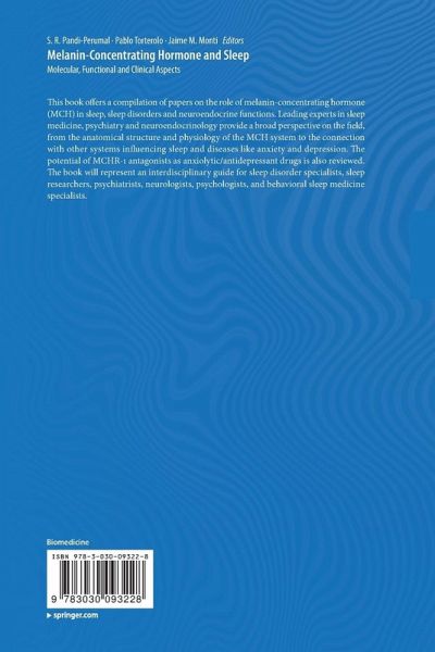 This book offers a compilation of papers on the role of melanin-concentrating hormone (MCH) in sleep, sleep disorders and neuroendocrine functions. Leading experts in sleep medicine, psychiatry and neuroendocrinology provide a broad perspective on the field, from the anatomical structure and physiology of the MCH system to the connection with other systems influencing sleep and diseases like anxiety and depression. The potential of MCHR-1 antagonists as anxiolytic/antidepressant drugs is also reviewed. The book will represent an interdisciplinary guide for sleep disorder specialists, sleep researchers, psychiatrists, neurologists, psychologists, and behavioral sleep medicine specialists.