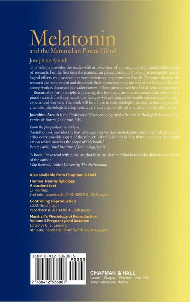Arendt's book provides the best coverage ever written on melatonin and the pineal gland, covering every possible aspect of the subject. I frankly do not believe that there is any rival publication which matches the scope of this book - Peretz Lavie, Israel Institute of Technology, Israel; A book that I have read with pleasure, that is up-to-date and that betrays the didactic experience of the author - Wop Rietveld, Leiden University, The Netherlands; The book is an excellent reference for undergraduate students and scientists in general. It is a must for graduate students, postdoctoral fellows, and established investigators in this field - A B Lerner, Yale University, USA; Since the beginning of the modern era of pineal research Josephine Arendt has been a towering figure in the field. She is therefore the perfect author for an authoritative text such as this and she has done an excellent job - British Journal of Psychiatry; Any research institute dealing with psychobiology should have a copy of this book in their library. It is not only the best text available on melatonin and the pineal, it also tells the story of successful science - the step by step elucidation of highly complex relationships between changing physiological functions and the temporal environment. - British Journal of Psychiatry; Arendt's book is the first comprehensive treatment of melatonin and so is very welcome ... Melatonin and the Mammalian Pineal Gland is an extremely clear summary of the state of the field and simply hums with Arendt's own enthusiasm for what has yet to be discovered ... Lerner, now long since retired from Yale, has written a brief forward. I can do no more than repeat his first sentence: `A wonderful book - comprehensive, up to date and beautifully written.' - Specialist Book Section, New Scientist; This book presents an overview of the role of the pineal gland and its hormone, melatonin, in biological rhythms, seasonal affectivedisordersin man, reproduction in seasonally breeding animal, etc., and the effects on these systems. Its 9 chapters cover (1) an introduction to melatonin and the mammalian pineal gland, (2) structure of the pineal gland, (3) biochemistry of the pineal, (4) light=dark control of melatonin synthesis, (5) role of the pineal in photoperiodic seasonal functions, (6) role of the pineal and melatonin in circadian rhythms, (7) human physiology and pathology of the pineal, (8) therapeutic potential of melatonin, and its significance for human health, and (9) target sites and mechanism of action of melatonin. There is a glossary of terms used in chronbiology, and a subject index - CAB Abstracts