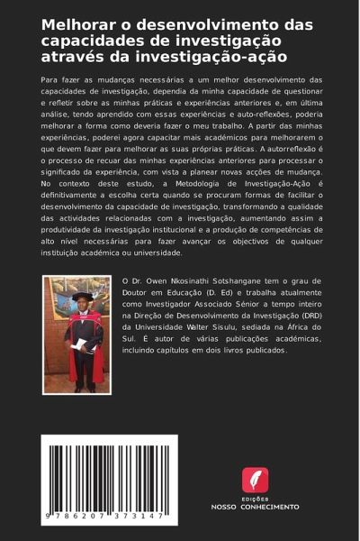 Para fazer as mudanças necessárias a um melhor desenvolvimento das capacidades de investigação, dependia da minha capacidade de questionar e refletir sobre as minhas práticas e experiências anteriores e, em última análise, tendo aprendido com essas experiências e auto-reflexões, poderia melhorar a forma como deveria fazer o meu trabalho. A partir das minhas experiências, poderei agora capacitar mais académicos para melhorarem o que devem fazer para melhorar as suas próprias práticas. A autorreflexão é o processo de recuar das minhas experiências anteriores para processar o significado da experiência, com vista a planear novas acções de mudança. No contexto deste estudo, a Metodologia de Investigação-Ação é definitivamente a escolha certa quando se procuram formas de facilitar o desenvolvimento da capacidade de investigação, transformando a qualidade das actividades relacionadas com a investigação, aumentando assim a produtividade da investigação institucional e a produção de competências de alto nível necessárias para fazer avançar os objectivos de qualquer instituição académica ou universidade.