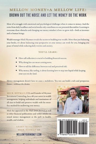Mellow Money=A Mellow Life: Drown out the noise and let the money do the work Do your palms start to sweat watching the markets bounce? Have the headlines got you in a constant state of panic and paralysis? Contrary to what you see on the news and in social media, money management can be a form of meditation that, when practiced correctly, blazes a path to peace rather than a road to emotional ruin. Though we all have unique roads to travel in life, most of us struggle with emotional and psychological challenges when it comes to money and building wealth. Learning to overcome these obstacles and changing our money mindset is how we grow rich-both as investors and as human beings. After a lifelong career as a wealth manager, Mick Heyman has discovered achieving greater balance in your personal finances leads to greater balance in your life. In Mellow Your Money, Mick shares the secrets to becoming healthy, wealthy, and wise- without all the anxiety. You'll learn:How self-reflection and self-awareness are crucial to building financial success. Why it's more effective to grow your money with long-term investing and how doing less can mean earning more. How to tell the difference between real and perceived risk, so you don't go chasing waterfalls over a cliff. How to profit in a counterintuitive market by shutting off the noise in the media. Why money, like surfing, is about learning how to step into liquid while keeping your eyes on dry land. Mellow Your Money offers an indispensable and engaging paradigm shift for every investor at any stage of their financial life. This is a book about more than just balancing your books, it's about balancing your perspective so your money can work for you and bring you peace of mind while reducing those daily worries and anxiety.