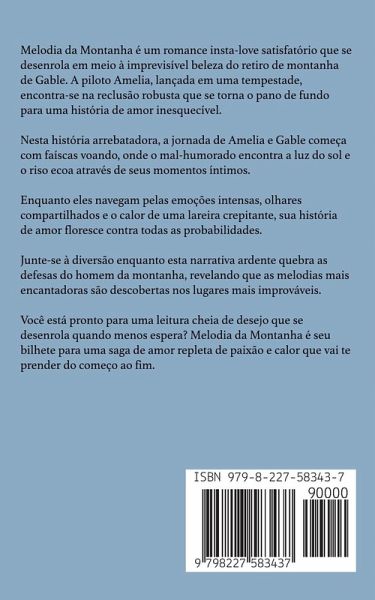 Melodia da Montanha é um romance insta-love satisfatório que se desenrola em meio à imprevisível beleza do retiro de montanha de Gable. A piloto Amelia, lançada em uma tempestade, encontra-se na reclusão robusta que se torna o pano de fundo para uma história de amor inesquecível. Nesta história arrebatadora, a jornada de Amelia e Gable começa com faíscas voando, onde o mal-humorado encontra a luz do sol e o riso ecoa através de seus momentos íntimos. Enquanto eles navegam pelas emoções intensas, olhares compartilhados e o calor de uma lareira crepitante, sua história de amor floresce contra todas as probabilidades. Junte-se à diversão enquanto esta narrativa ardente quebra as defesas do homem da montanha, revelando que as melodias mais encantadoras são descobertas nos lugares mais improváveis. Você está pronto para uma leitura cheia de desejo que se desenrola quando menos espera? Melodia da Montanha é seu bilhete para uma saga de amor repleta de paixão e calor que vai te prender do começo ao fim.