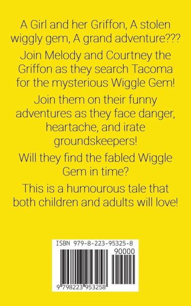 A Girl and her Griffon, A stolen wiggly gem, A grand adventure??? Join Melody and Courtney the Griffon as they search Tacoma for the mysterious Wiggle Gem! Join them on their funny adventures as they face danger, heartache, and irate groundskeepers! Will they find the fabled Wiggle Gem in time? This is a humourous tale that both children and adults will love!