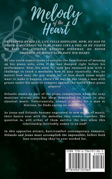 Entrapped by his ex, life feels hopeless. Now, he has to teach a mechanic to play piano like a pro. As he fights to save his father's beloved Steinway, he never dreamed he might also save his heart. No one could expect Jonas to survive the humiliation of messing up his piano solo, even if he was dumped right before his performance. Now, his need for cash has ensnared him with a challenge to teach a mechanic how to play classically. But, no matter how sexy the guy might be, or how much Jonas might want to make it happen, there's no way he can teach a man with grease under his nails to compete against the world's best piano players! Orlando wants no part of the piano competition when the sexy musician storms into his shop demanding he learn to play classical music. Unfortunately, always a sucker for a man in distress, he finds saying no impossible. As Jonas and Orlando become engrossed in new styles of music, their hearts soar with the melodies they create together. The question is, will either of them survive the loss when this relationship inevitably comes to an end? In this opposites attract, hurt/comfort contemporary romance, Orlando and Jonas must accomplish the impossible, before both lose everything they've ever worked for.